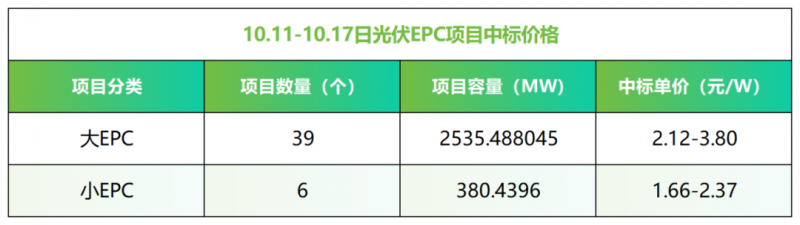 本周(10.11-10.17日)光伏EPC招中标项目共71个,规模3.97GW