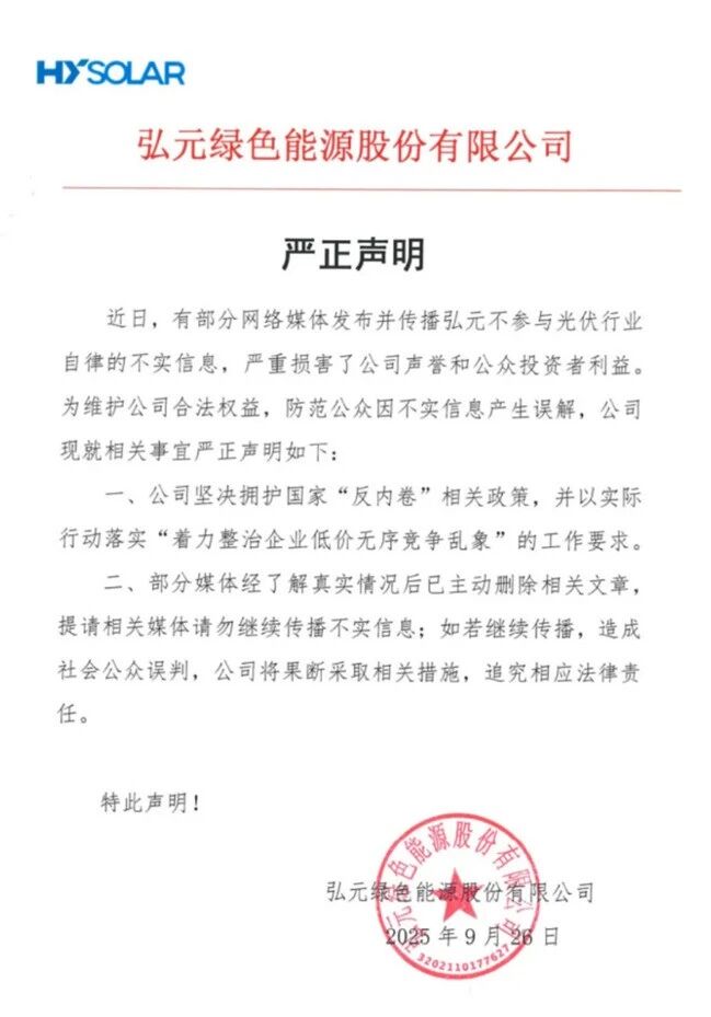 然而争议并未就此平息。9月,弘元绿能“被踢出自律名单”的消息曝出,一度令其股价跌至谷底,公司不得不发布《严正声明》以正视听。