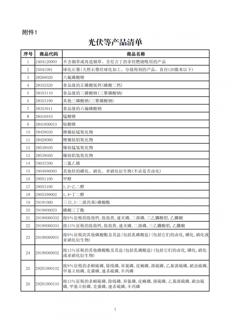附件:1.光伏等产品清单