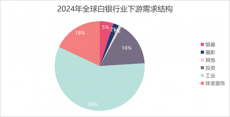 据世界白银协会数据,2024年白银需求中,工业、珠宝首饰、投资分别占58%、18%、16%,而工业需求中,电气领域占23%,光伏领域占17%。