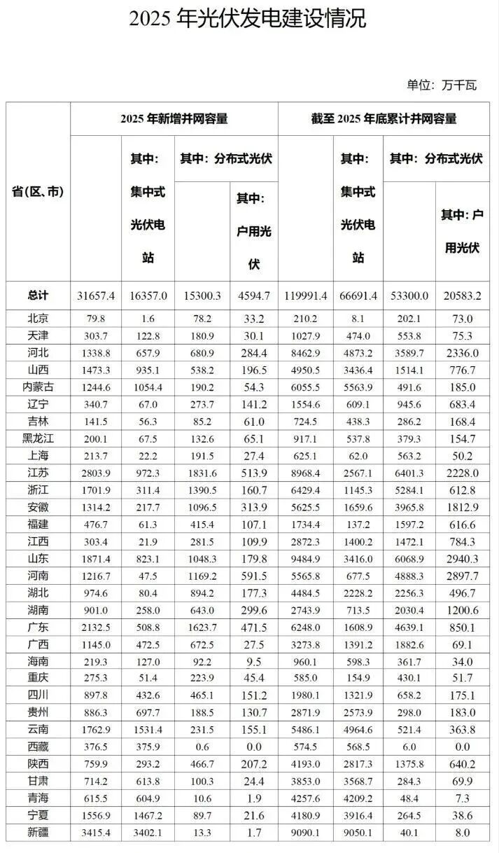 新疆、江苏、广东领衔,2025全国各地光伏新增装机数据发布
