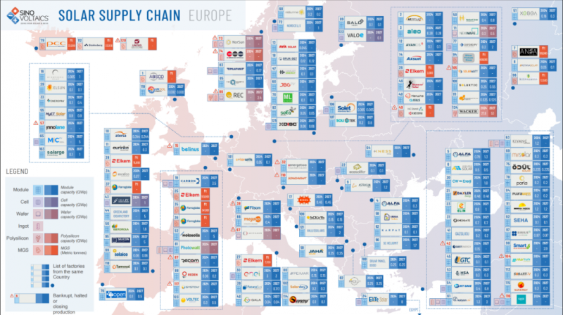 但事实是,欧洲的太阳能部署停滞不前,整个产业链上的工厂倒闭和破产现象不断增加: