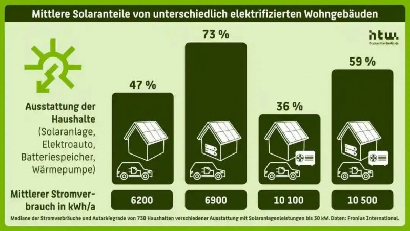 今年5月,柏林应用技术大学的一项新研究就曾表明,拥有光伏发电、储能和电动汽车的家庭平均可实现73%的电力自给率。也印证了光储充一体化在用户侧实现清洁、高效、自主供用电的可行路径。