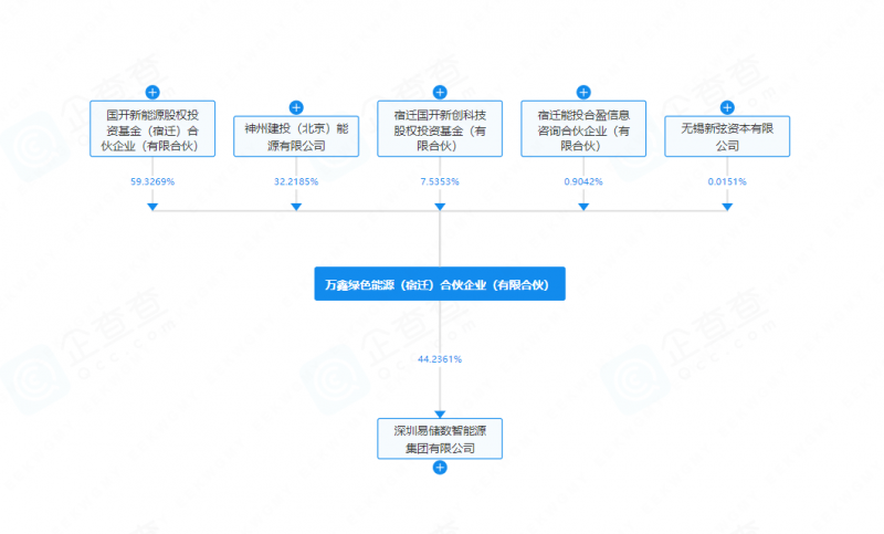该公司于9月提交注册,从成立到接手深圳易储,尚不足20天。翻开其股东名单,第一大股东为国开新能源股权投资基金(宿迁)合伙企业(有限合伙),是锡创投管理的宿迁政府引导基金,出资额比例达到98.4741%。第二大股东为宿迁能投合盈信息咨询合伙企业(有限合伙),出资额比例为1.5009%,其股东为9个自然人。第三大股东为无锡新弦资本有限公司,是国开新能源股权投资基金(宿迁)合伙企业(有限合伙)的基金管理人无锡国联新创私募投资基金有限公司旗下子公司,出资额比例为0.025%。