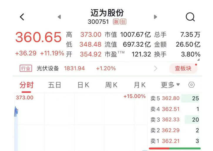 2026年1月26日,迈为股份市值冲破1000亿元。