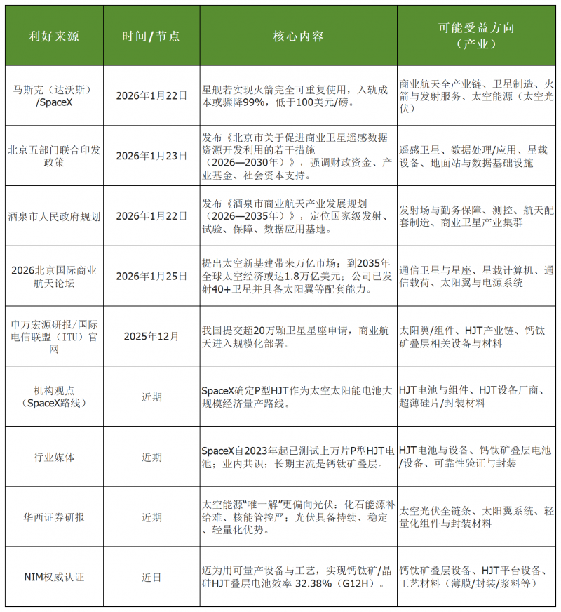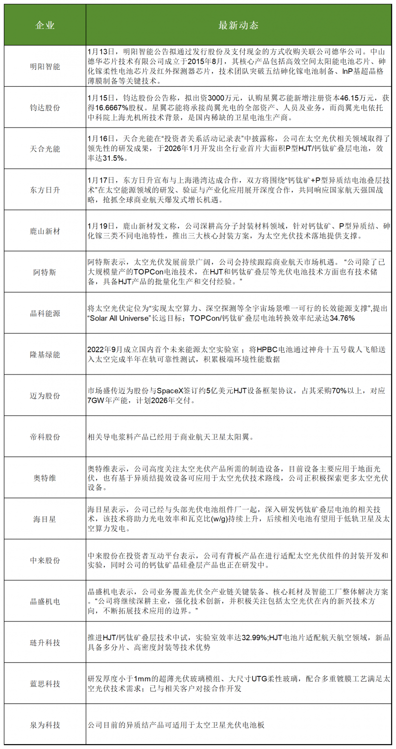 建设生产基地,太空光伏年需求将超过100TW等等;