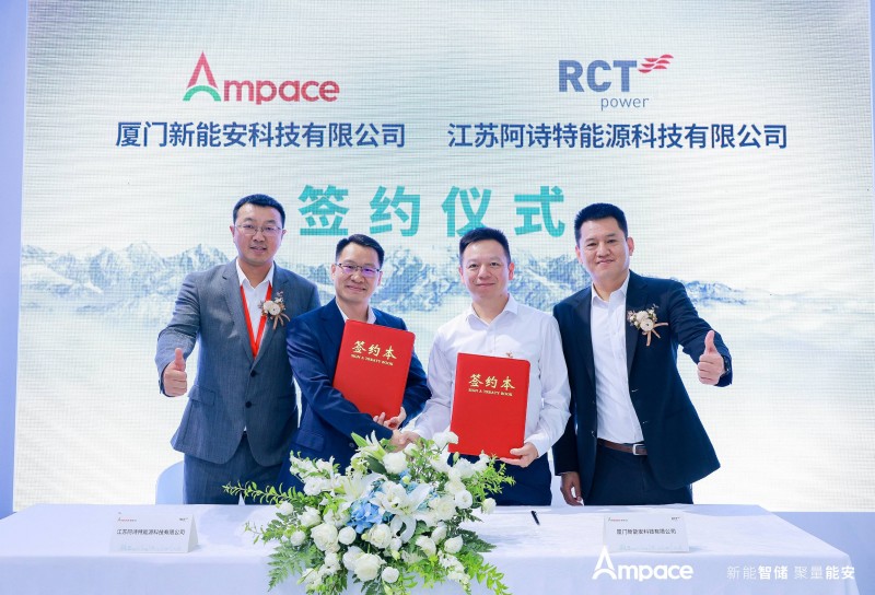 展会期间,Ampace新能安还相继与江苏阿诗特能源科技有限公司、广东锐顶电力技术有限公司、上海联科熙和能源科技有限公司、维谛技术有限公司签订战略合作协议(按签约时间排序)。