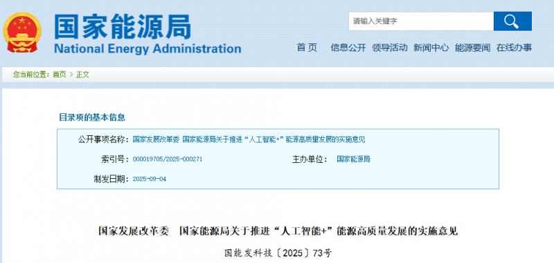 ·9月8日,国家发改委、国家能源局联合印发《关于推进“人工智能+”能源高质量发展的实施意见》,明确了到2027年、2030年两个阶段加快构建能源与人工智能融合创新体系的总体思路和愿景目标。