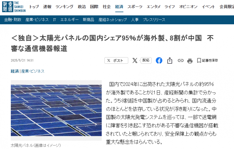 一方面,外国生产的光伏面板席卷日本市场正引发担忧。