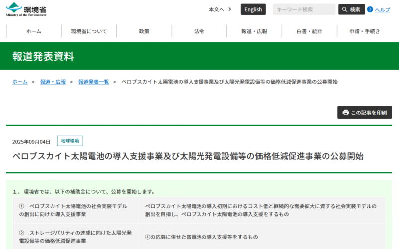 钙钛矿则获得了更为确定的支持,今年9月日本环境省启动两项补贴计划,推动钙钛矿光伏的早期部署,并鼓励储能系统的配套应用。