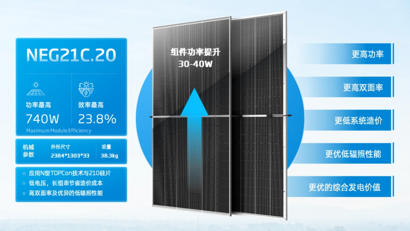 一边是BOS成本、土地成本双节省的“节流”能力,一边是抢发高价电的“开源”实力,740W系列组件的节省初始投资+提升电价收益的“双向奔赴”实力,正是电力市场化交易下的最优解。此外,其最高效率可达23.8%,即便对于大型基地项目的高效率要求也能轻松满足,为业主在复杂市场环境中提供更强确定性与竞争力。
