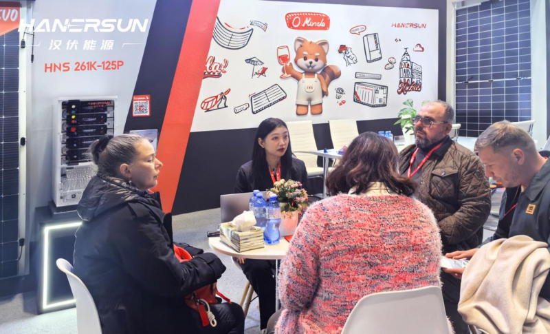 展会期间,光储展品备受现场专业观众关注,访客纷纷驻足深入咨询合作细节。汉伏能源已与多位客户升级合作,未来将持续扎根西班牙市场,深化与当地伙伴的协同联动,以贴合区域需求的产品方案与完善的本地化服务回应客户期待,为伊比利亚半岛绿色能源转型贡献稳定可靠的力量。