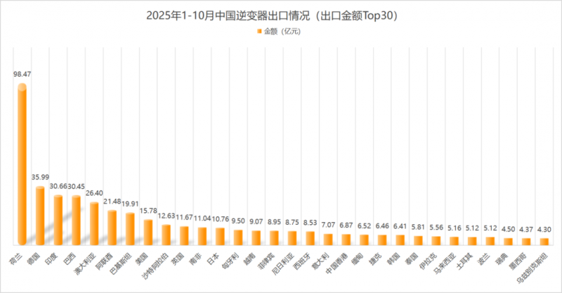 根据中国海关总署,今年1-10月,我国逆变器出口额总计超532.5亿元。从欧美等传统市场,到非洲、中东等新兴市场,中国逆变器在全球范围内遍地开花。