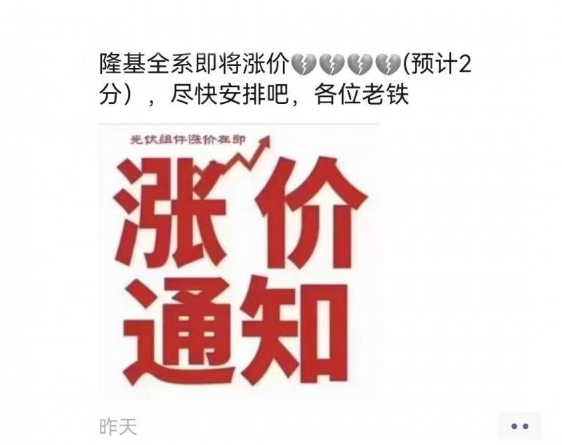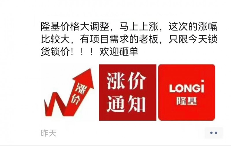 部分头部厂商已释放出涨价风声,据最新消息,隆基价格将上调,预计幅度从2分到4分不等。