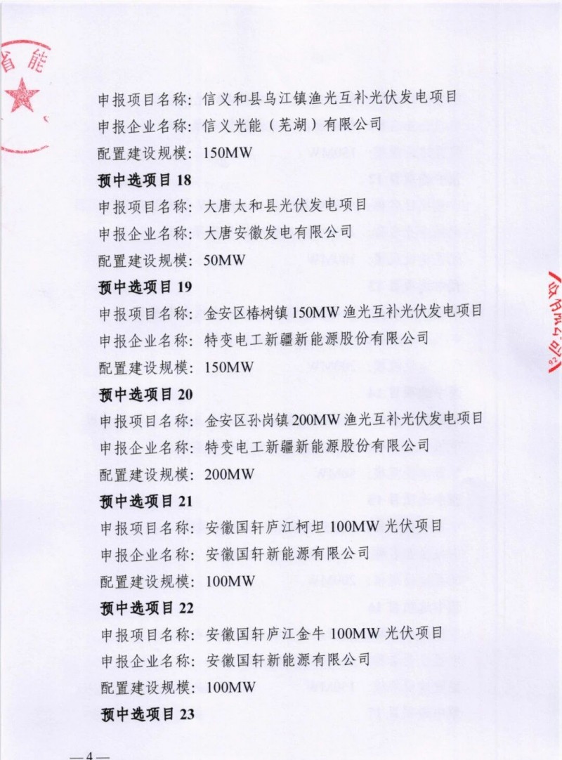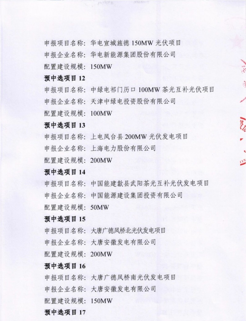 安徽3GW光伏项目指标公示!