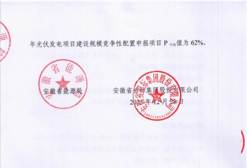 需要指出的是,上述项目为预中标项目,申报项目P项目值指申报项目承诺申请纳入机制的电量占其年上网电量(按年合理利用小时数计算)的比例,安徽省2025年光伏发电项目建设规模竞争性配置申报项目P平均值为62%。