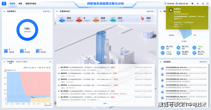 为切实解决企业供配电系统对高可靠性、优质供电的迫切需求,CET 中电技术打造了供配电异常信息捕捉与故障诊断分析系统,构建起“监测-评估-治理”的完整技术闭环,为用户供用电系统安全稳定运行筑牢核心技术屏障。该系统可精准捕捉、记录海量波形与事件数据,灵敏识别瞬时性、持续性、隐蔽性局部故障并精准研判,快速定位事故源与故障位置;同时结合电能质量治理设备实现靶向施策,从根源上解决电能质量问题。