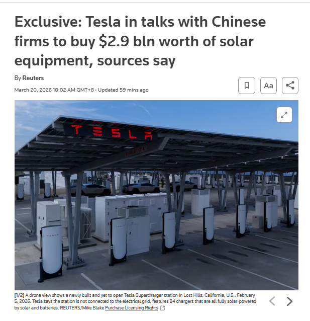 有分析人士做过测算,如果特斯拉选择非中国供应商,同样规模的光伏产线,成本至少翻倍,且工期也会显著延长。对于一向精打细算的马斯克来说,这是一道再清楚不过的选择题。